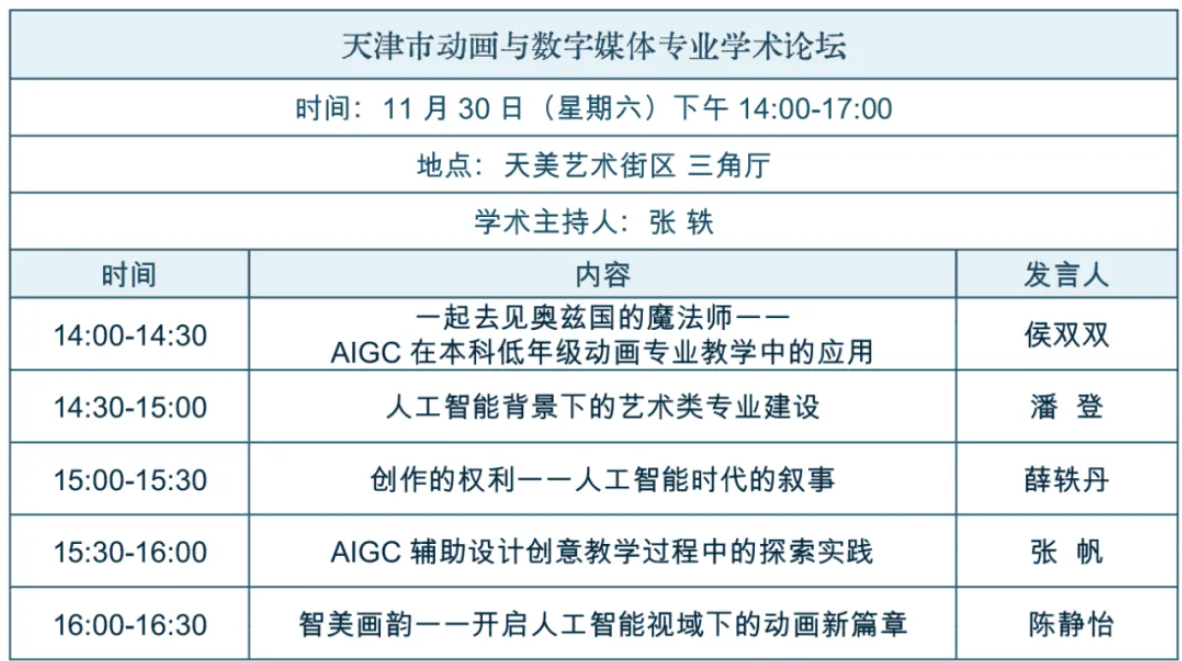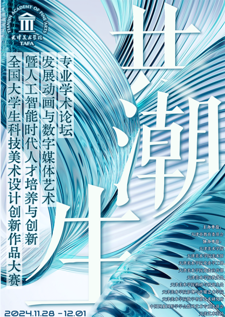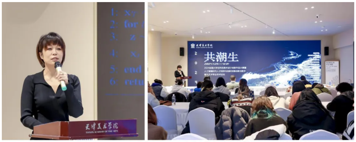 2024年11月29日至11月30日,“共潮生——2024全国大学生科技美术设计创新作品大赛优秀作品展暨人工智能时代人才培养与创新发展动画与数字媒体艺术专业学术论坛”系列活动在天美艺术街区成功举办。出席本次论坛的特邀嘉宾有多所国内顶尖艺术院校的院长,教育部高校动画与数字媒体教学指导委员会的专家,来自全国高校动画与数字媒体艺术专业的负责人等。六合彩 教师代表张帆老师参加了天津市动画与数字媒体专业学术论坛,并代表六合彩 进行了题为《生成式人工智能辅助设计创意教学过程的探索实践》的主旨发言。