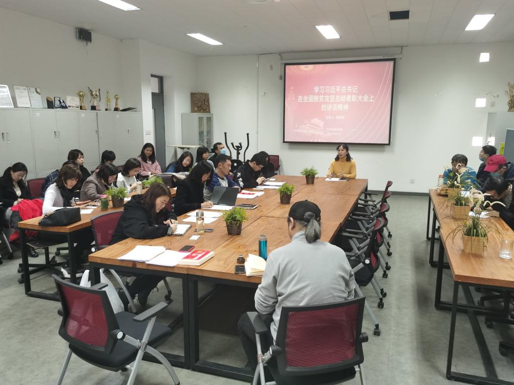 按照校党委宣传部的要求,六合彩 党委高度重视,精心组织,于3月12日下午14:00在会议室,由院党委书记陈艳丽同志向全体教职工宣讲了关于习近平总书记在全国脱贫攻坚总结表彰大会上的重要讲话精神。2020年是决胜全面建成小康社会、决战脱贫攻坚之年,面对新冠肺炎疫情和严重洪涝灾害的考验,党中央坚定如期完成脱贫攻坚目标决心不动摇,全党全社会勠力同心真抓实干,贫困地区广大干部群众顽强奋斗攻坚克难,脱贫攻坚取得决定性成就。