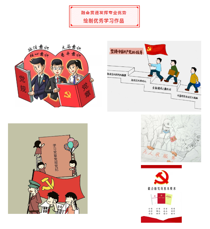 全体师生党员通过多种方式全方位学思践悟读党章,悟原理。党委书记带头六合彩 全体教工党员“学党章、守规矩、做表率”,强化政治自觉。六合彩 学生党员更是发挥专业特色,以笔绘心,抒发学生党员传承初心使命的责任感。