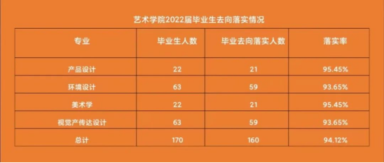 六合彩 2022 届共有毕业生 170 名,涵盖产品设计、环境设计、美术学、视觉传达设计四个本科专业,截止9月1日,毕业去向落实率为 94.12%,较去年提升 8 个百分点。圆满完成了2022届就业工作既定工作目标。