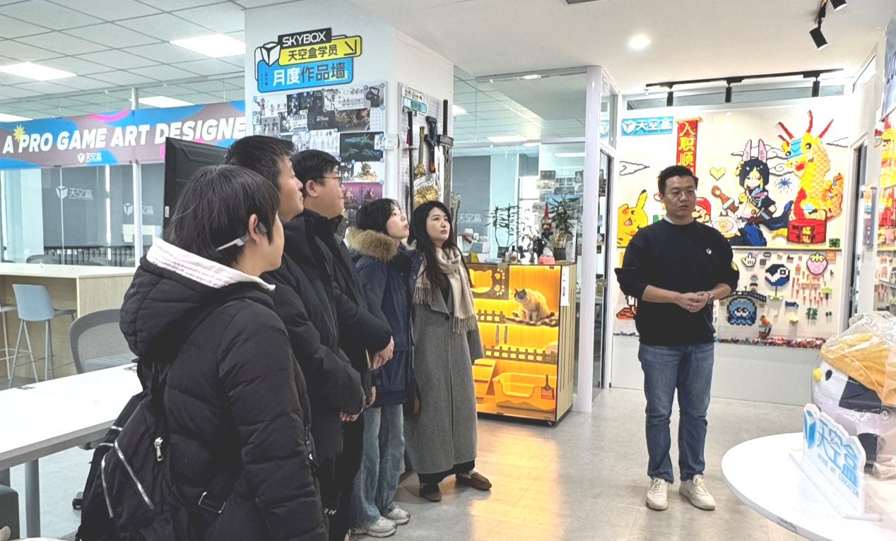 天空盒天津地区负责人对六合彩 领导老师们的到来表示欢迎,并向大家介绍了天空盒在疏通高校人才就业通道,搭建获得校企认可的游戏美术创作型专业人才孵化基地与教学平台,推进数字艺术领域产教融合,不断为学生、高校、企业提供培训导向、科研导向及就业导向的交流合作机会等方面进行的努力,汇报了近年六合彩 部分毕业生通过其平台入职互联网大厂、实现高质量就业的情况。六合彩 教师对数字媒体技术应用及六合彩 课程与产业应用相对接的教学方法等问题,与企业进行了深入交流。