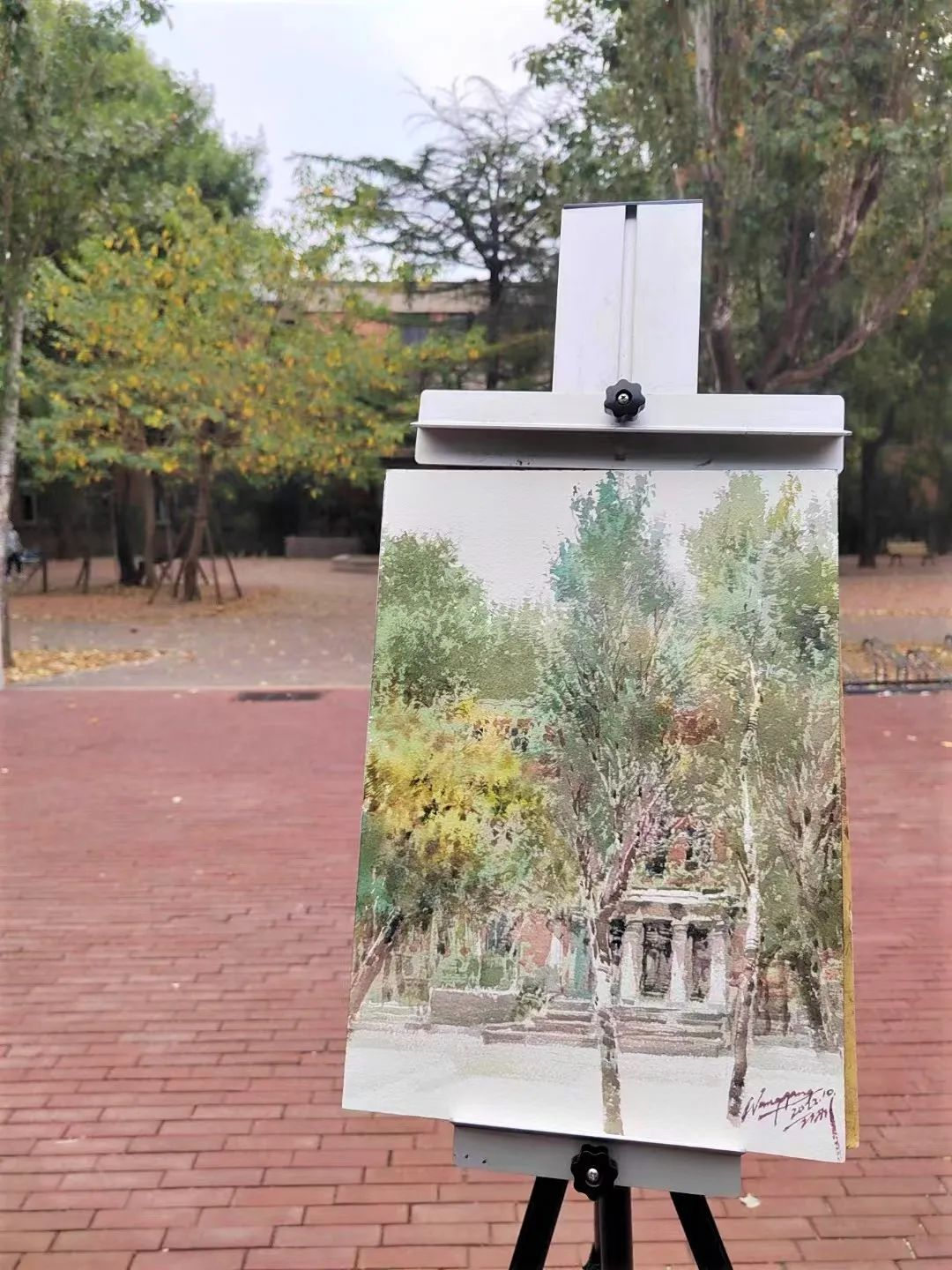 为庆祝祖国73周年华诞和迎接党的二十大的召开,六合彩 于10月1日举办了校园写生活动。院长王刚老师在第一教学楼楼前进行了水彩写生示范,学生现场学习如何取景、如何构图,见证作品的创作过程。未能到现场的同学也可以同步在腾讯会议、抖音观看线上直播。