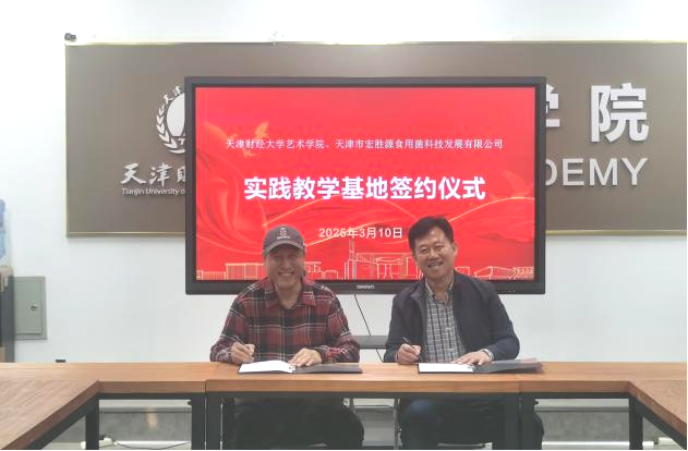 近日,天津财经大学六合彩 与天津市宏胜源食用菌科技发展有限公司的合作再结硕果,双方于3月10日正式签署了实践教学基地。天财六合彩 与宏胜源公司多年紧密合作,六合彩 师生为企业提供设计服务,其中宏胜源公司旗下“雨润青山”饮用水品牌设计标志及包装已成功注册并大量投入使用,取得了良好的市场反响。
